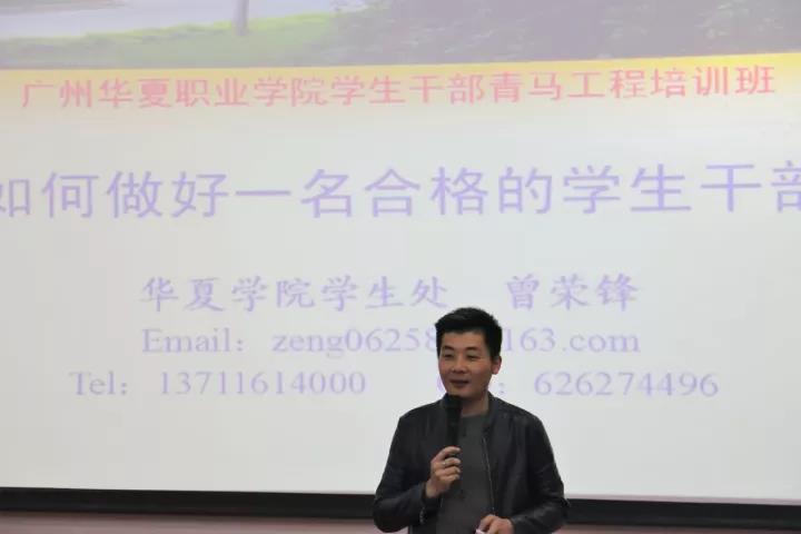 接着,学生处处长曾荣锋同志就《如何做好一名合格的学生干部》进行开班第一讲。授课中,他希望学员们在学习和生活中不断提升自己的政治思想水平,定位好自己的角色、发挥自己的作用,不断提高自己的综合素质,为做一名优秀的学生干部打下基础。他特别强调,学生干部的本质是学习,其次是干部,最后才是学生干部。曾荣锋同志还与大家共勉一句话:“天道酬勤,吃亏是福”。话音刚落,全场便响起热烈地掌声。