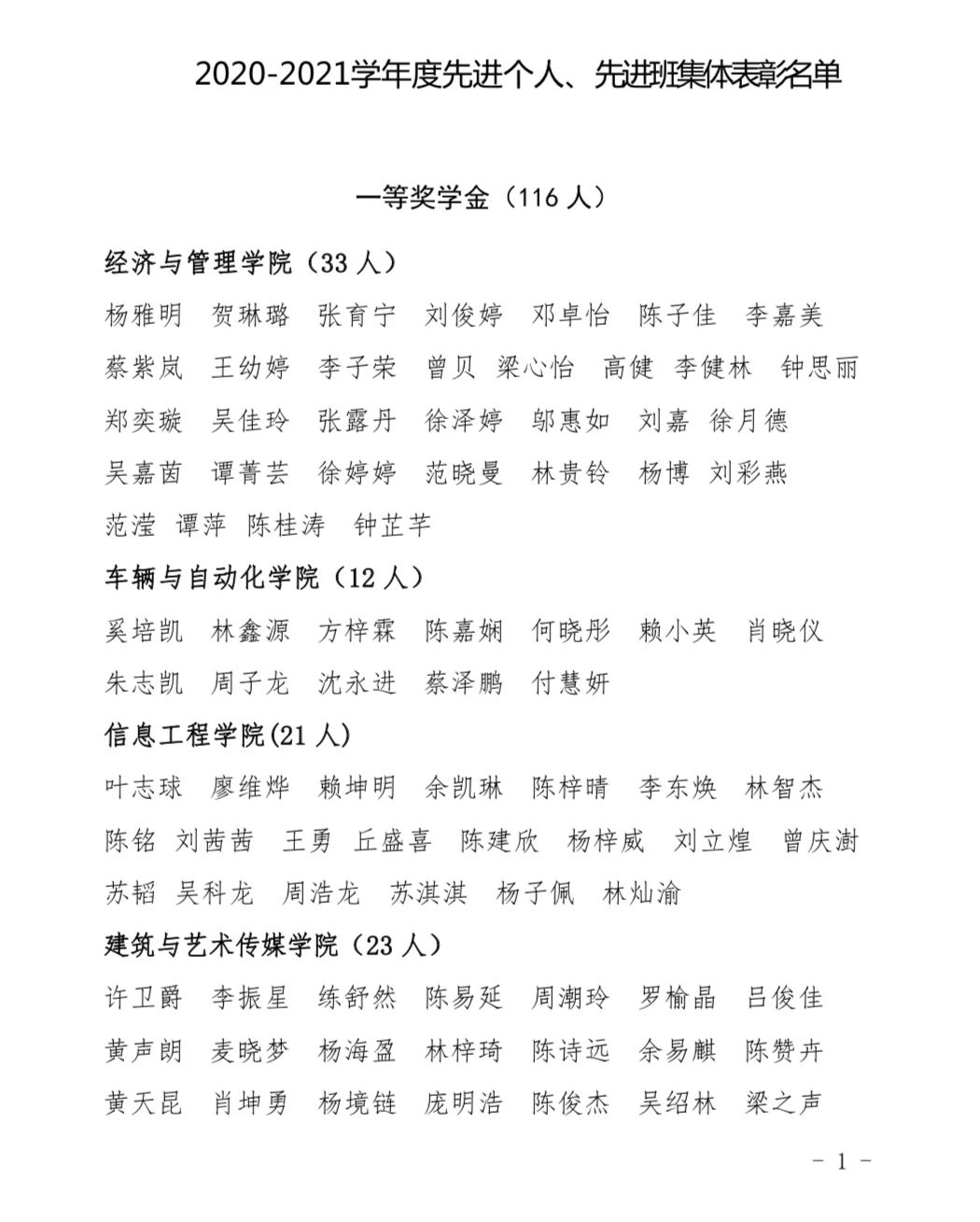 根据华夏院学字〔2021〕9号关于印发《2020-2021学年度广州华夏职业学院学生评优评先方案》的通知,经过各二级学院会同学生工作部严格审议,拟杨雅明、贺琳璐等116位同学获得“一等奖学金”,黎润隆、陈湘銮等304位同学获得“二等奖学金”,曾龙、黄诗淇等453位同学获得“三等奖学金”,授予李雅文、吴冰玲等216位同学“优秀学生骨干”荣誉称号,授予19电商3班等41个班集体为“先进班集体”荣誉称号。现将相关名单公布如下。请全校师生监督、审查。如有问题请在2021年5月27日之前如实向学生工作部反映。