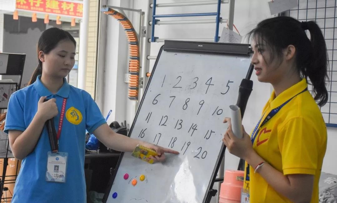 志愿者们简单介绍完自己,活动正式开始,志愿者们将学员们带入第一节课生活技能课,向学员们传授充分准备过的知识,向学员们普及数字的应用,并教学员们学习简单的算术题,带领他们体验数学与日常生活中的联系,充分利用奖励的方式带动课堂的积极性。