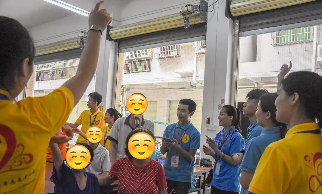 伴随着课间休息十分钟,志愿者们和学员们唱起了欢快的歌。学员们一遍一遍地跟着志愿者们学唱音乐,混合在一起的动听歌声传遍了工疗站的每个角落。
