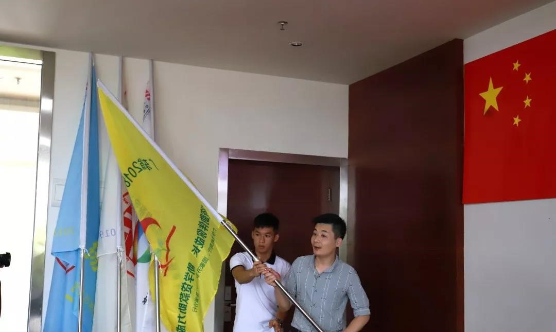 学校学生处曾荣锋处长为筑梦之队、圆梦之队、领航队、扬帆队各队长授旗。