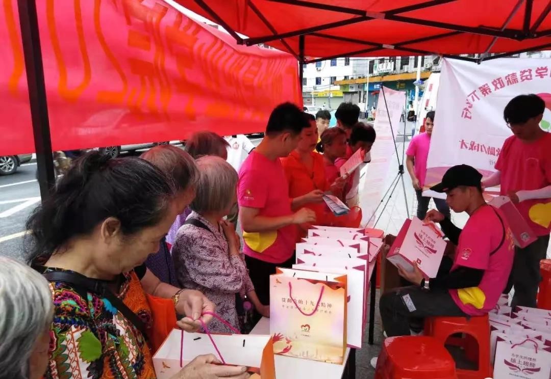 活动中,正在赶集的吕田群众纷纷被我们的宣传点吸引过来,认真地向师生们咨询了解国家资助政策。