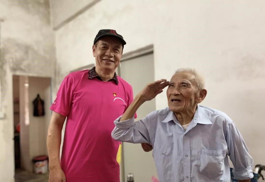 临别前,刘国荣老人不顾队员们“劝阻”,艰难地从轮椅站起来,仿佛回到当年激情燃烧的革命岁月,向我们全体敬上一个标准的70多年前老军礼!在场师生,无不为之动容,潸然泪下。