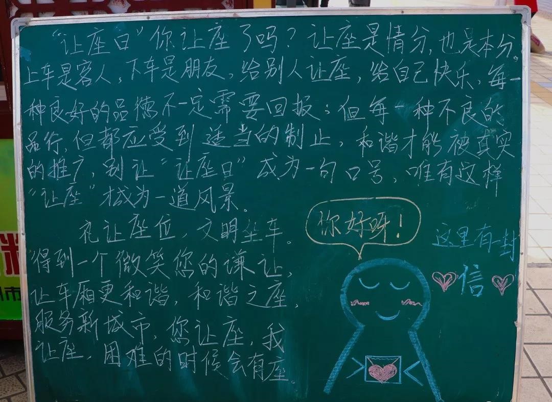 志愿者还邀请行人用便利贴写下对"让座"的建议和看法,贴上小黑板上。