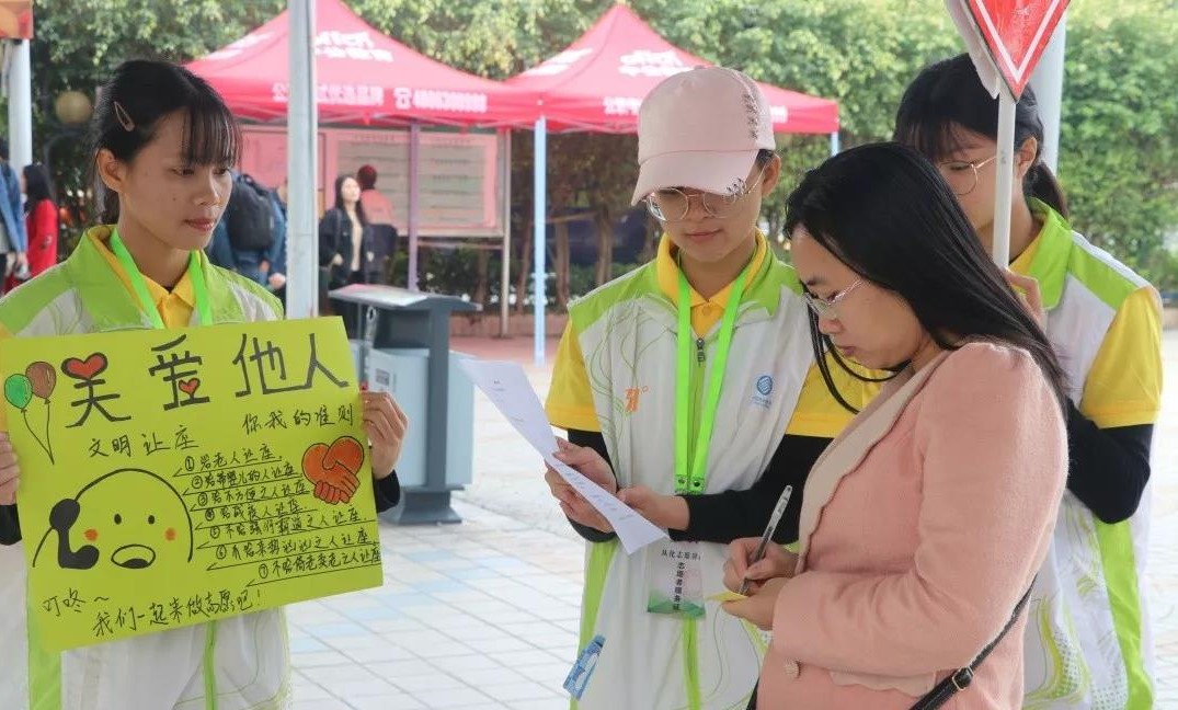 2018年11月24日上午,广州华夏职业学院青年志愿者协会在从化汽车驿站开展了“国际让座日”活动。