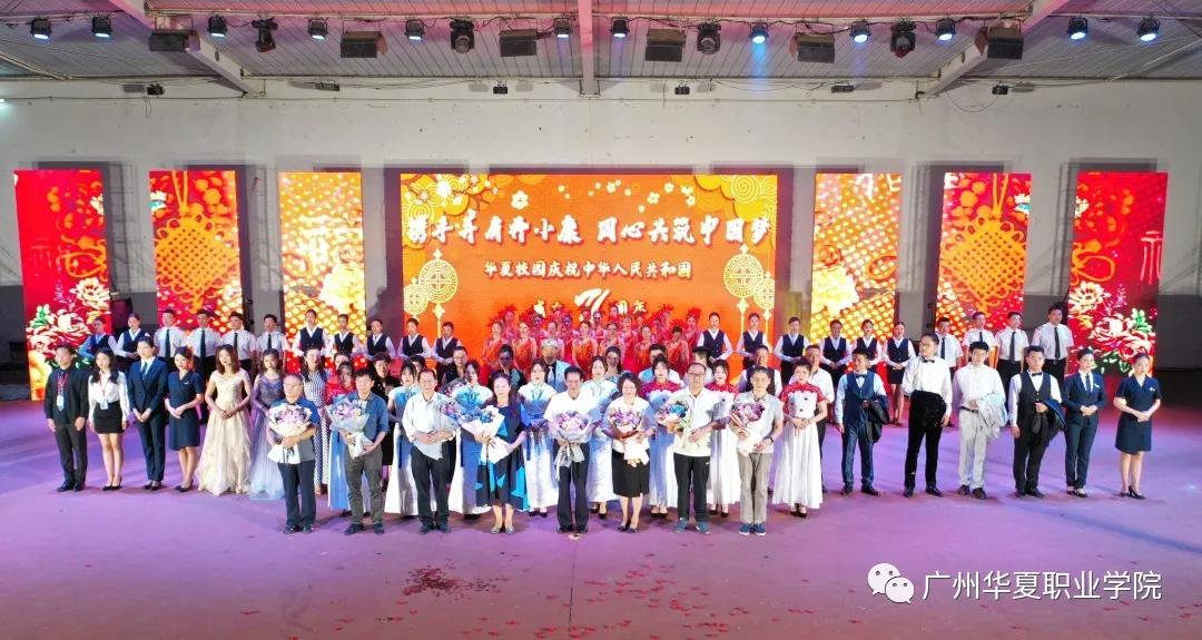 “携手并肩奔小康 同心共筑中国梦”华夏校园庆祝中华人民共和国成立71周年暨2020级新生迎新晚会顺利开展。学校校长邹建华、党委书记李曲生,副校长林红、梅桂萍、欧咏梅、许诺,广东华夏高级技工学校何伟娥执行校长等领导,以及各处室、各学院领导嘉宾们,2020级全体新生参加。